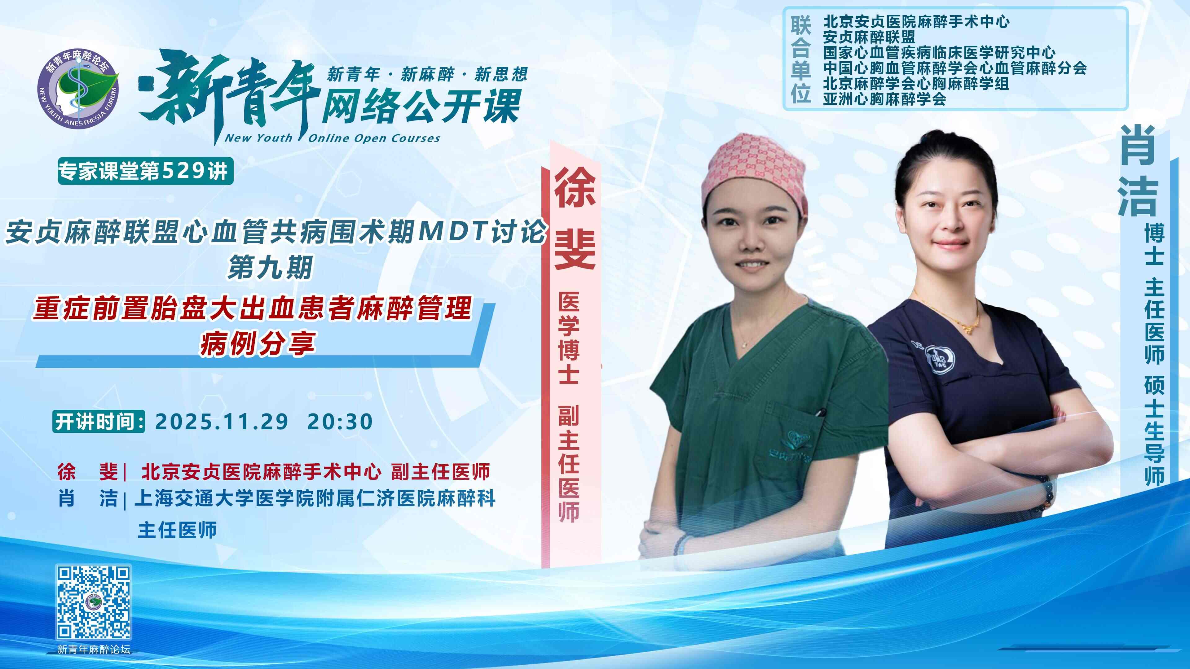 第529讲:安贞麻醉联盟心血管共病围术期MDT讨论—第九期:重症前置胎盘大出血患者麻醉管理病例分享 (徐菲 副主任医师 & 肖洁 主任医师)