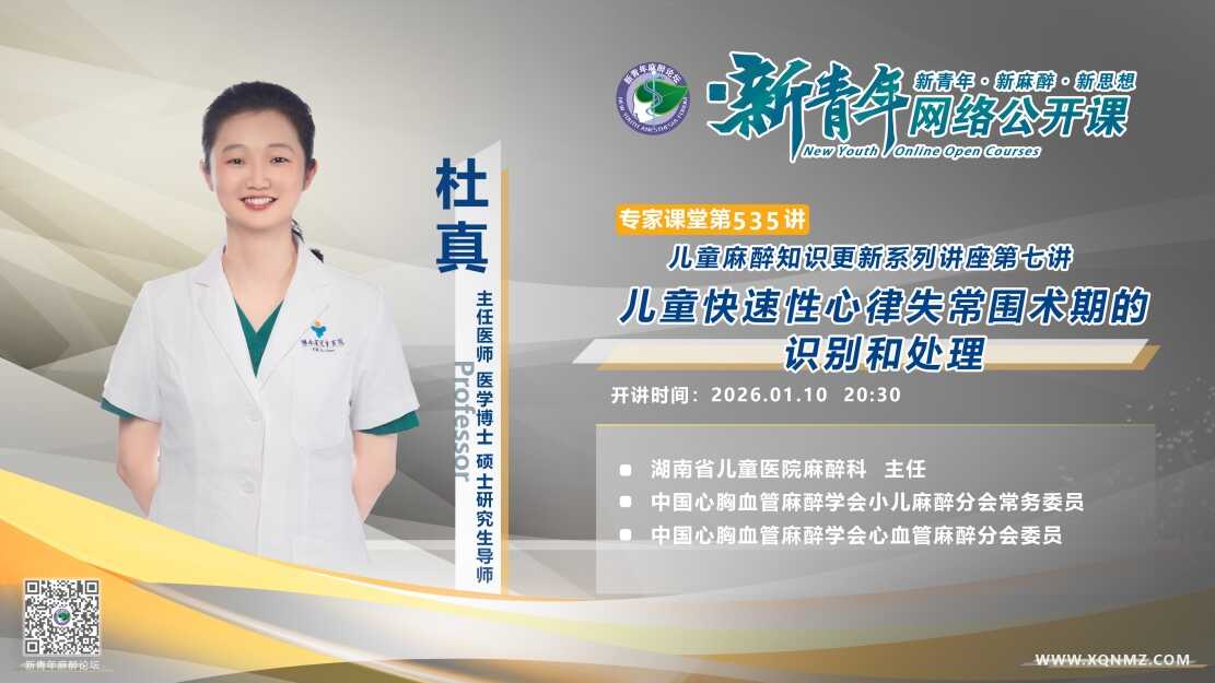 第535讲:儿童麻醉知识更新系列讲座第七讲:儿童快速性心律失常—围术期的识别和处理 (杜真 教授)