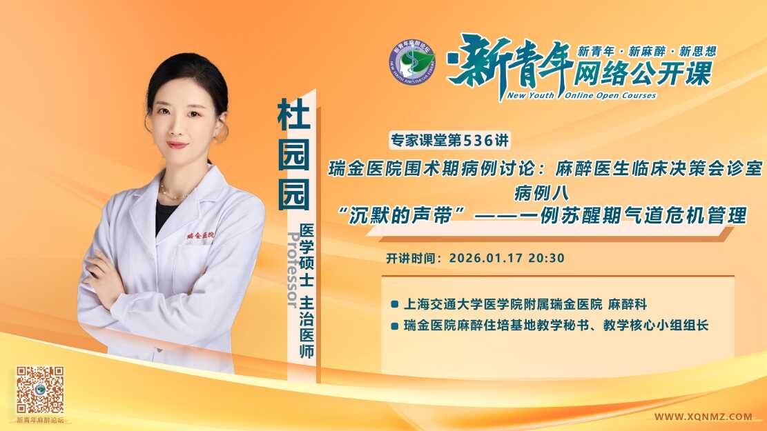 第536讲:瑞金医院围术期病例讨论-麻醉医生临床决策会诊室病例八:“沉默的声带”——一例苏醒期气道危机管理 (杜园园 主治医师)