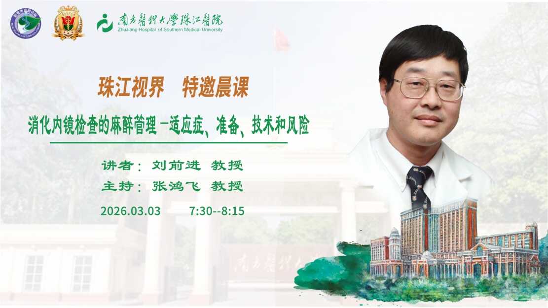 珠江视界-特邀晨课:消化内镜检查的麻醉管理一适应症、准备、技术和风险 (刘前进 教授)