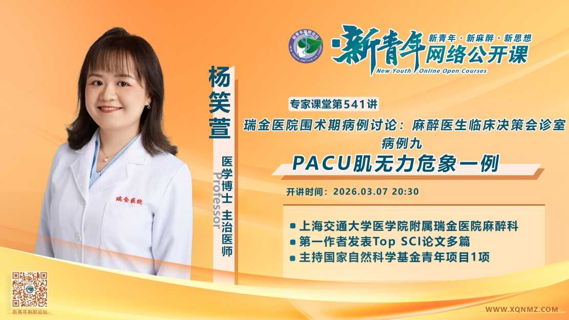 第541讲:瑞金医院围术期病例讨论-麻醉医生临床决策会诊室病例九:PACU肌无力危象 一例 (杨笑萱 教授)