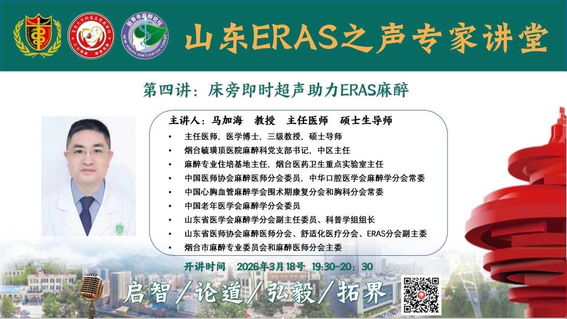 山东ERAS之声专家讲堂第四期:床旁即时超声助力ERAS麻醉 (马加海 教授 )