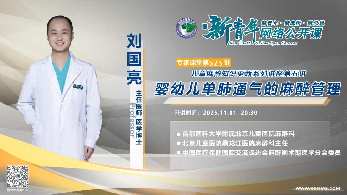 第525讲: 儿童麻醉知识更新系列讲座第五讲 婴幼儿单肺通气的麻醉管理 (刘国亮 教授)