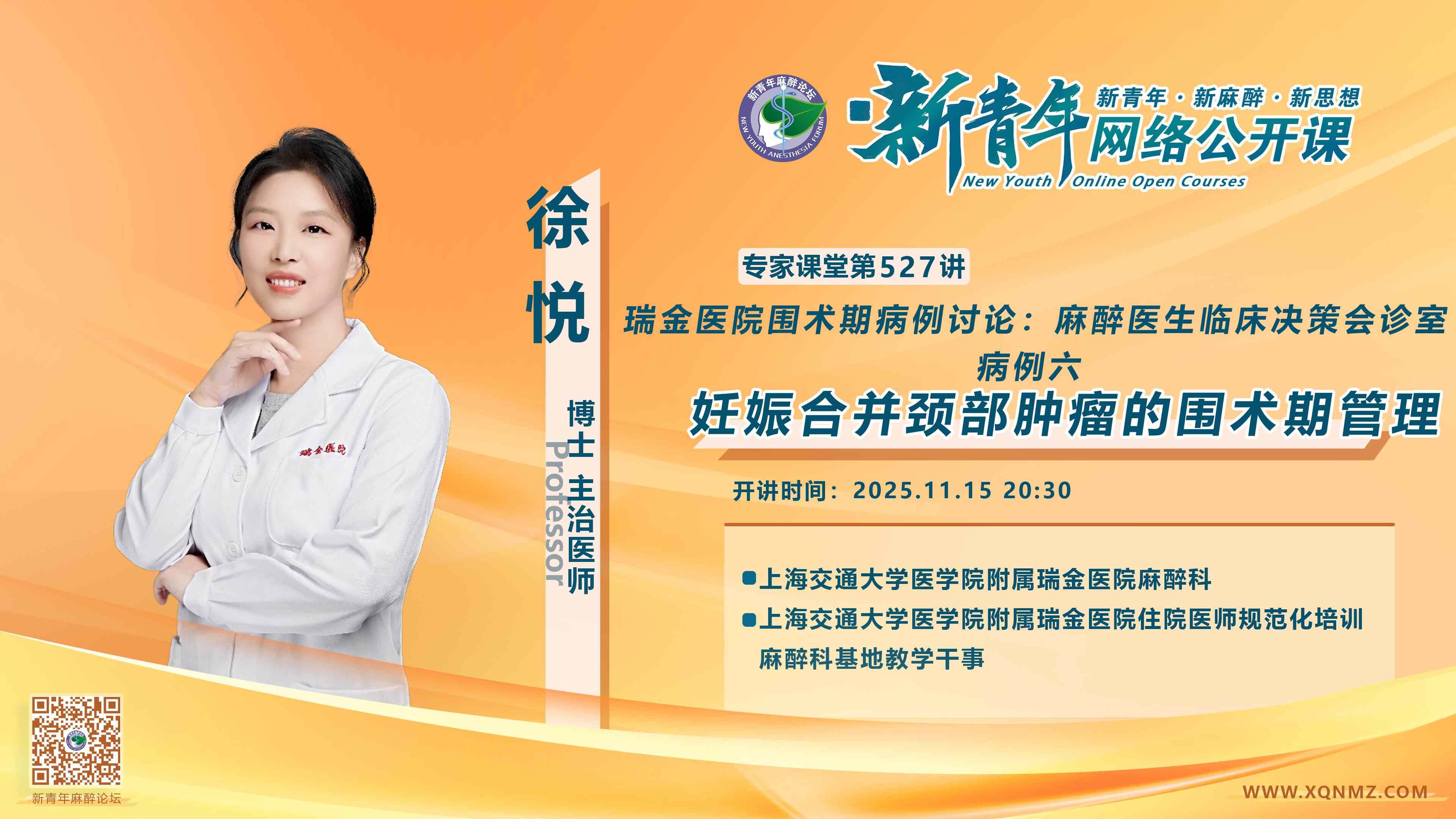 第527讲:瑞金医院围术期病例讨论--麻醉医生临床决策会诊室病例六:妊娠合并颈部肿瘤的围术期管理 (徐 悦 主治医师)