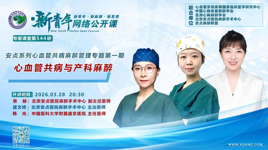 第544讲:安贞系列心血管共病麻醉管理专题 第1期:心血管共病与产科麻醉 (景赫& 庞文婷&韩光)
